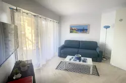 Le Lido Cagnes sur Mer, entre Nice et Antibes, résidence luxueuse en bord de mer avec piscine, spacieux  2 pièces de 55m2, cuisine entièrement équipée séparée, chambre avec grand lit en 160cm, séjour avec canapé lit convertible, tv, wifi, salle de bain avec baignoire, belle terrasse, garage sous sol
